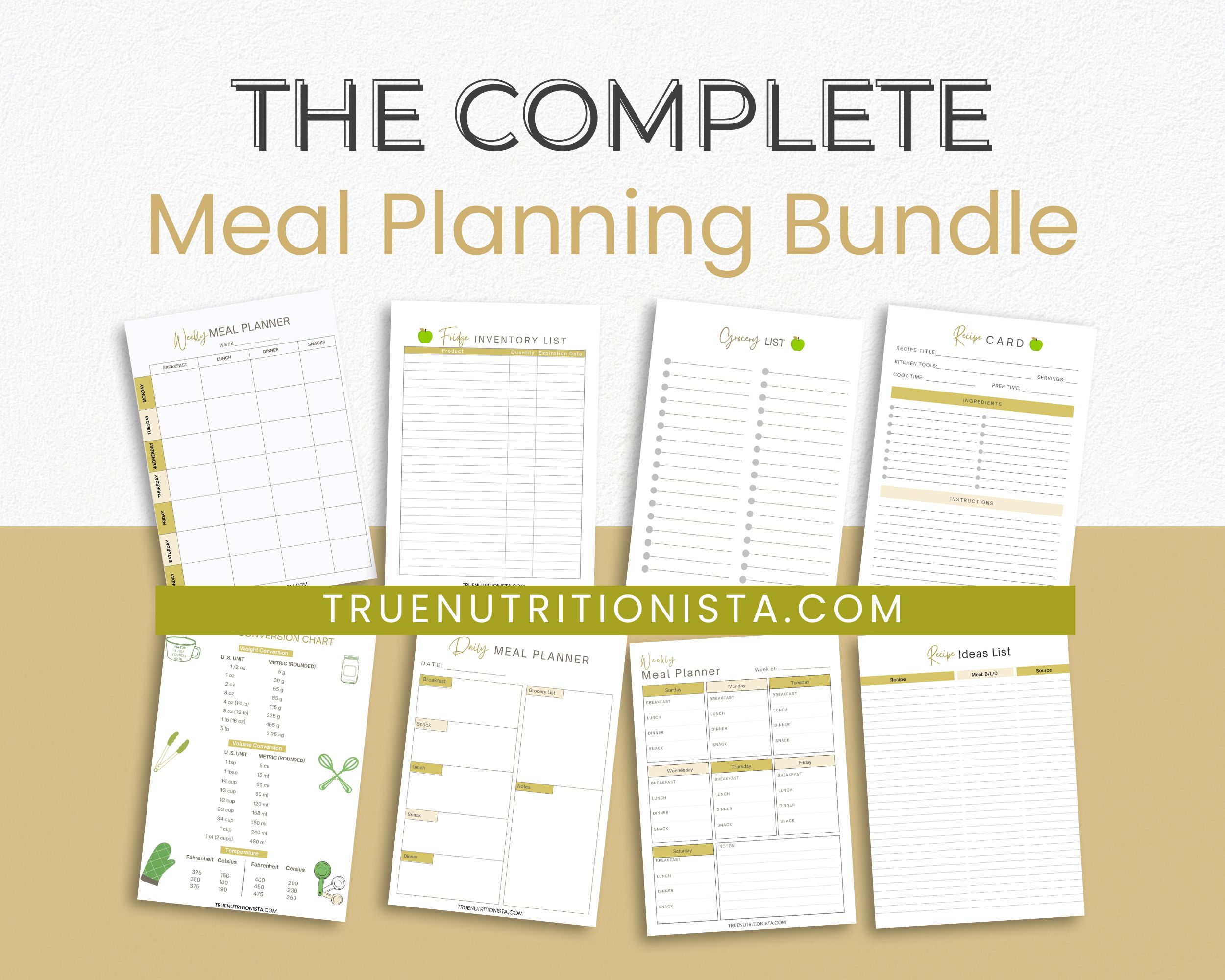 This in depth meal planning bundle is designed to make meal prepping and batch cooking a breeze. With a meal planning set, the days of stressing out about what you are going to eat next will become a thing of the past. Meal planners are a must have tool to use especially because it can help you become organized in the kitchen.